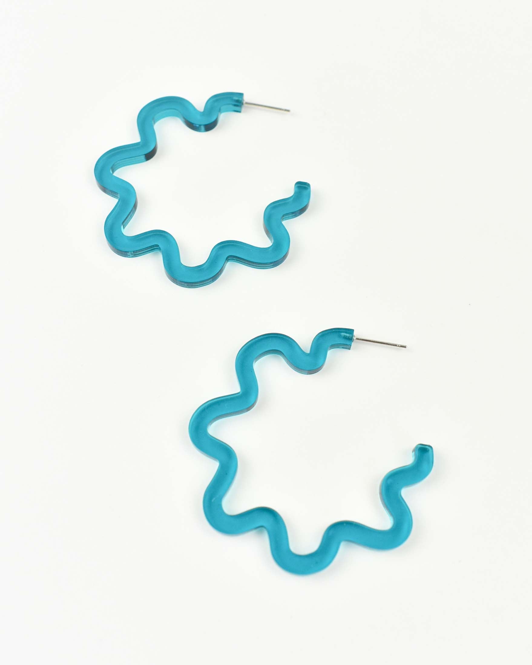 Brighten up your look with our Wavy Hoop Earrings. Made of lightweight acrylic, these hoops feature an abstract, doodle design by our founder, for a playful twist on the classic hoop earring.